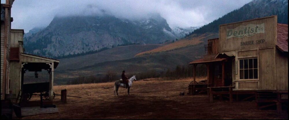 Desde el punto de vista del significado, este fotograma encarna la idea central del film: la figura del justiciero como espectro. El título bíblico no es casual. Este jinete no es plenamente humano, ni plenamente divino. Es castigo, es memoria, es consecuencia. Eastwood construye un personaje que parece venir de fuera del tiempo, y la composición visual refuerza esa sensación de extrañamiento: no hay calor, no hay cercanía, no hay psicología accesible.